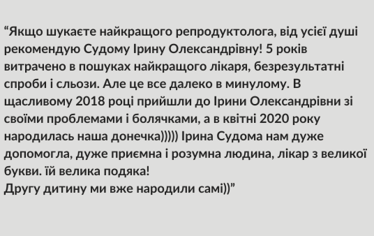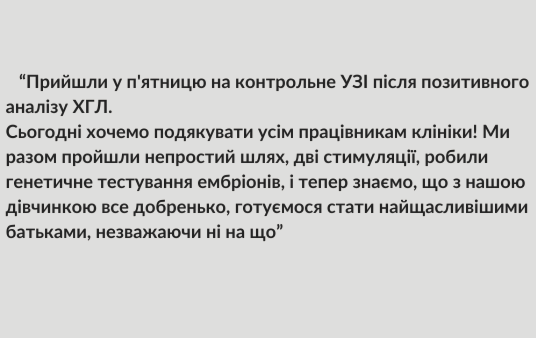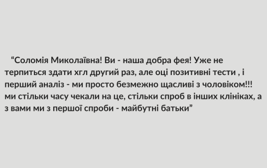 Наша команда лікарів допомогла багатьом родинам стати батьками та почути такі бажані “мамо і тато”.